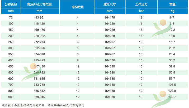 *適用于公稱直徑《945mm的幾乎所有等級(jí)和品牌的鑄鐵管、球墨鑄鐵管道